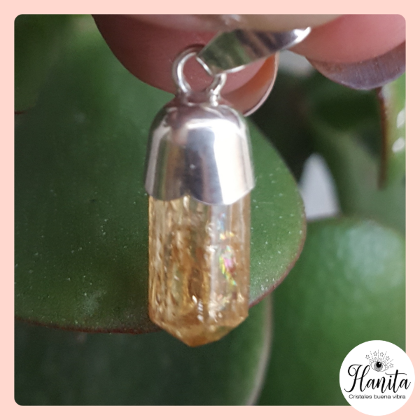 Dije de piedra natural topacio imperial. Engarzado en plata 925. Tamaño 2,5 x 0,8 cm.
